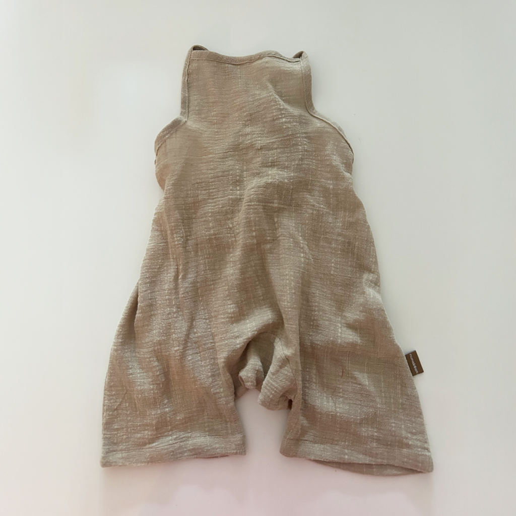 The Miso PLAYsuite, with adjustable straps it can be worn 3-6 months either way of stated sizing. Pants can be rolled up to allow for allowing for size and length adjustments. The romper design allows for easy movement.